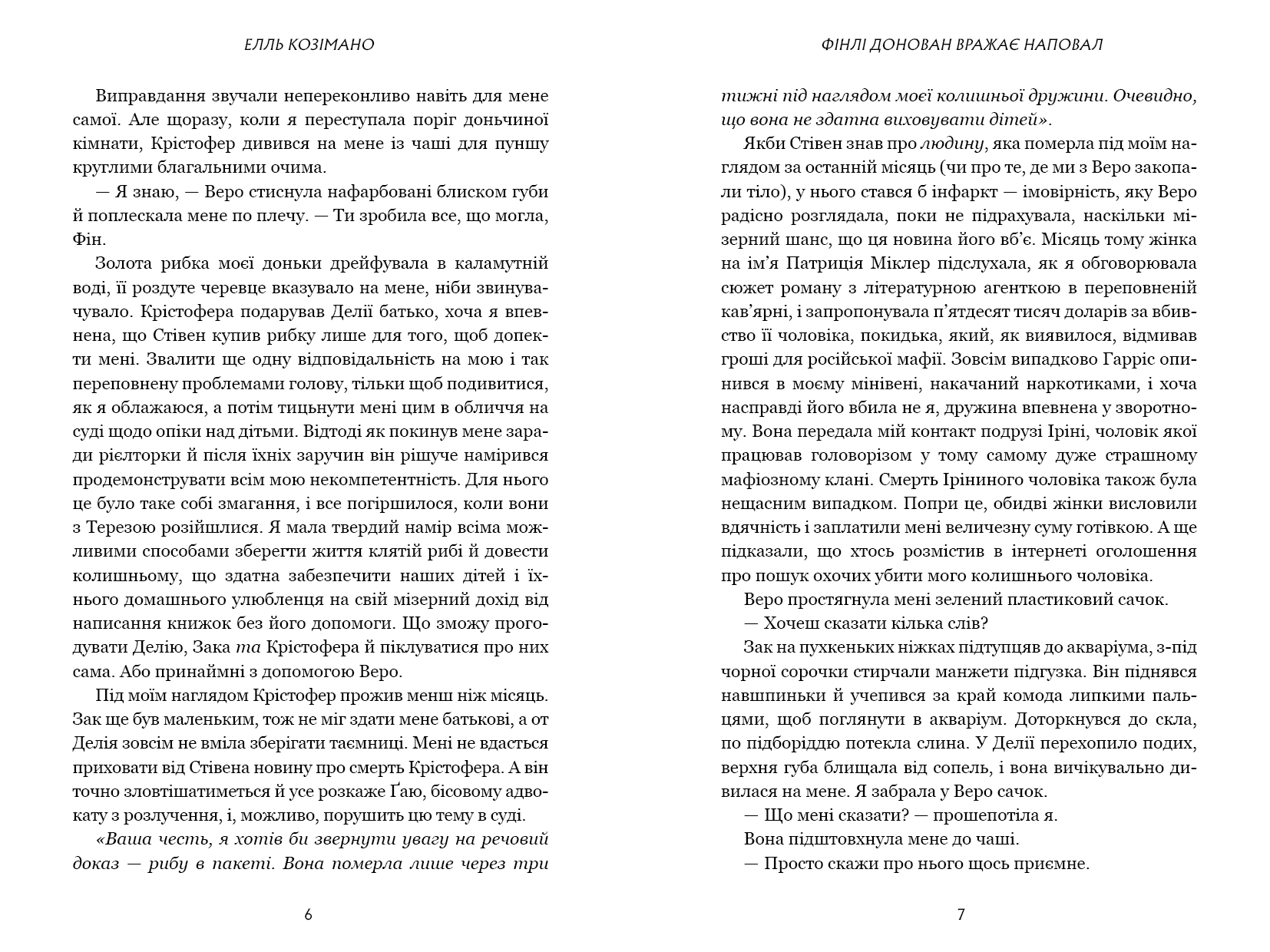 Фінлі знову намагається дописати свій новий роман і бодай якось триматися на плаву з двома малими дітьми. З хорошого — поруч є Веро, няня й вірна соратниця, а єдиний мертвий «клієнт», з яким Фінлі мала справу останнім часом, — це золота рибка її доньки.