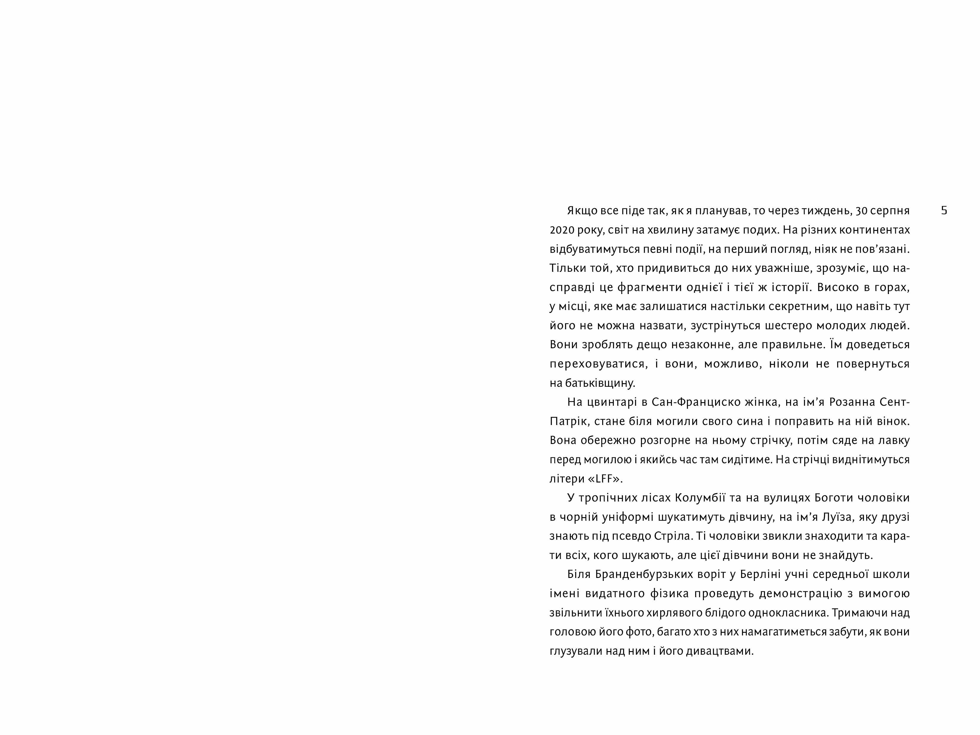 Маю маленьке питання до Анни Шевчук, як я розумію, відповідальної за дизайн. При використанні практично оригінальної обкладинки яка логіка була ставити точки, що не відповідають персонажам книги? Аляска, десь у океані біля Флориди, Саудівська Аравія... На Ютубі (якщо не читати книгу) є офіційний тизер до книги де є карта з геолокацією учасників FLL.