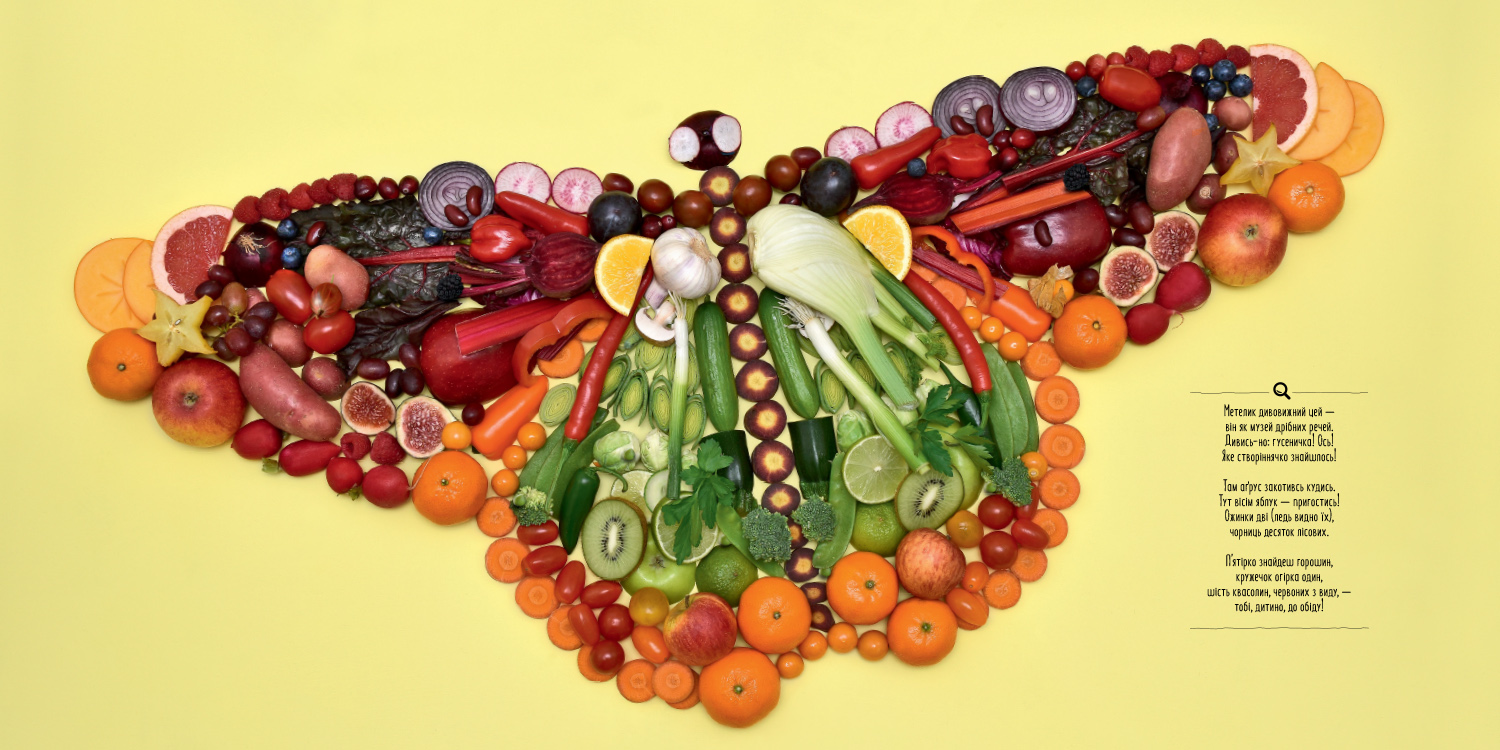 за кольорами і зібравши у цілісні картини різні предмети. На кожній розгортці є