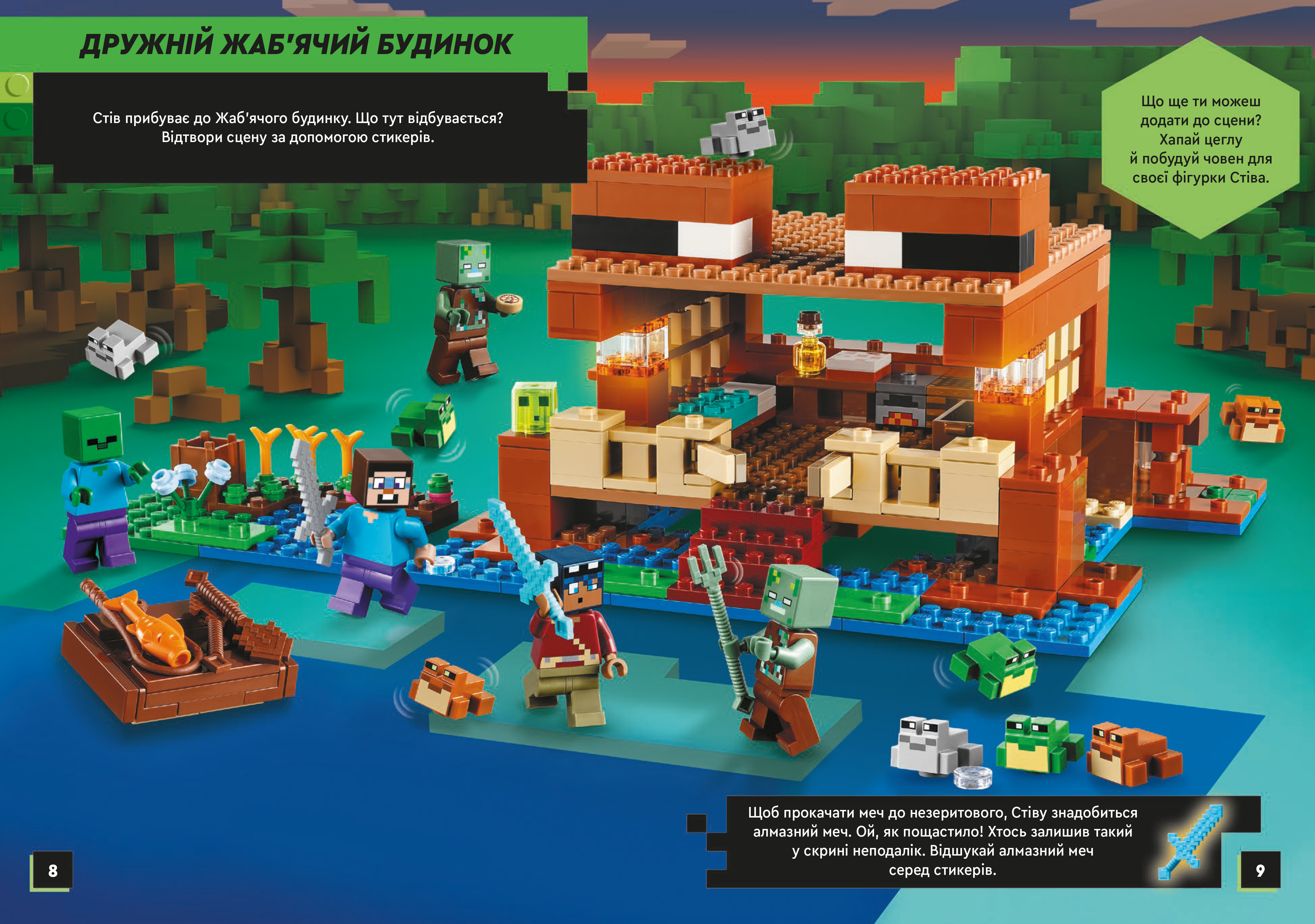 Досліди Верхній світ, Енд і Незер у крутих сценах з конструктору LEGO Minecraft. Розв’язуй завдання,