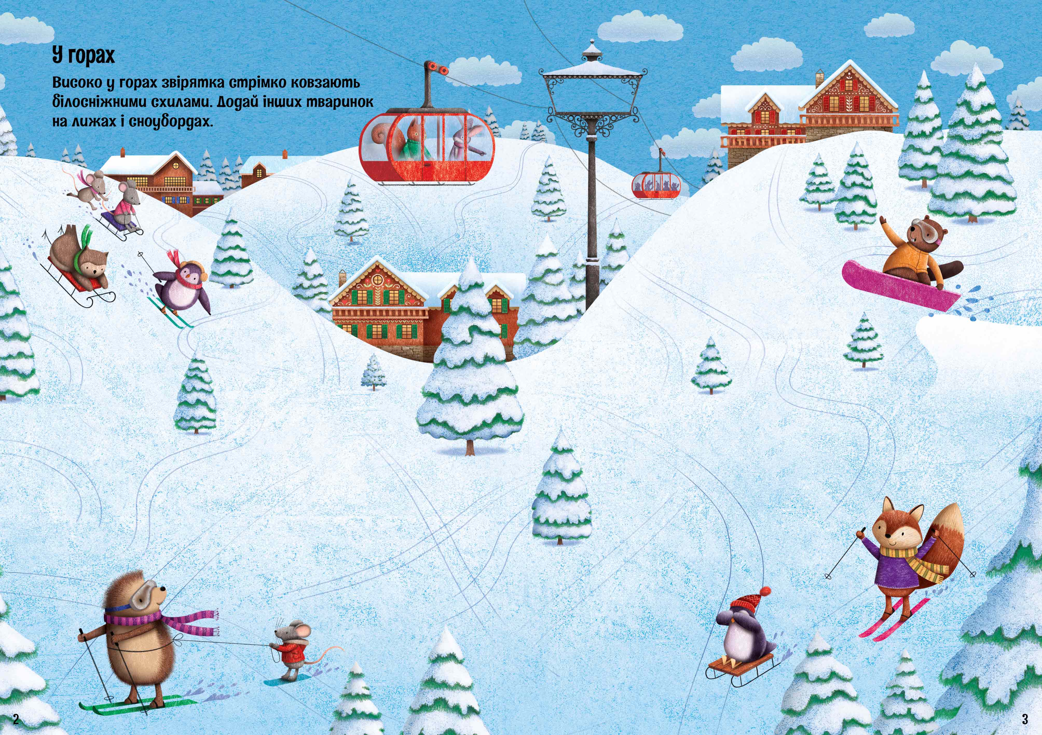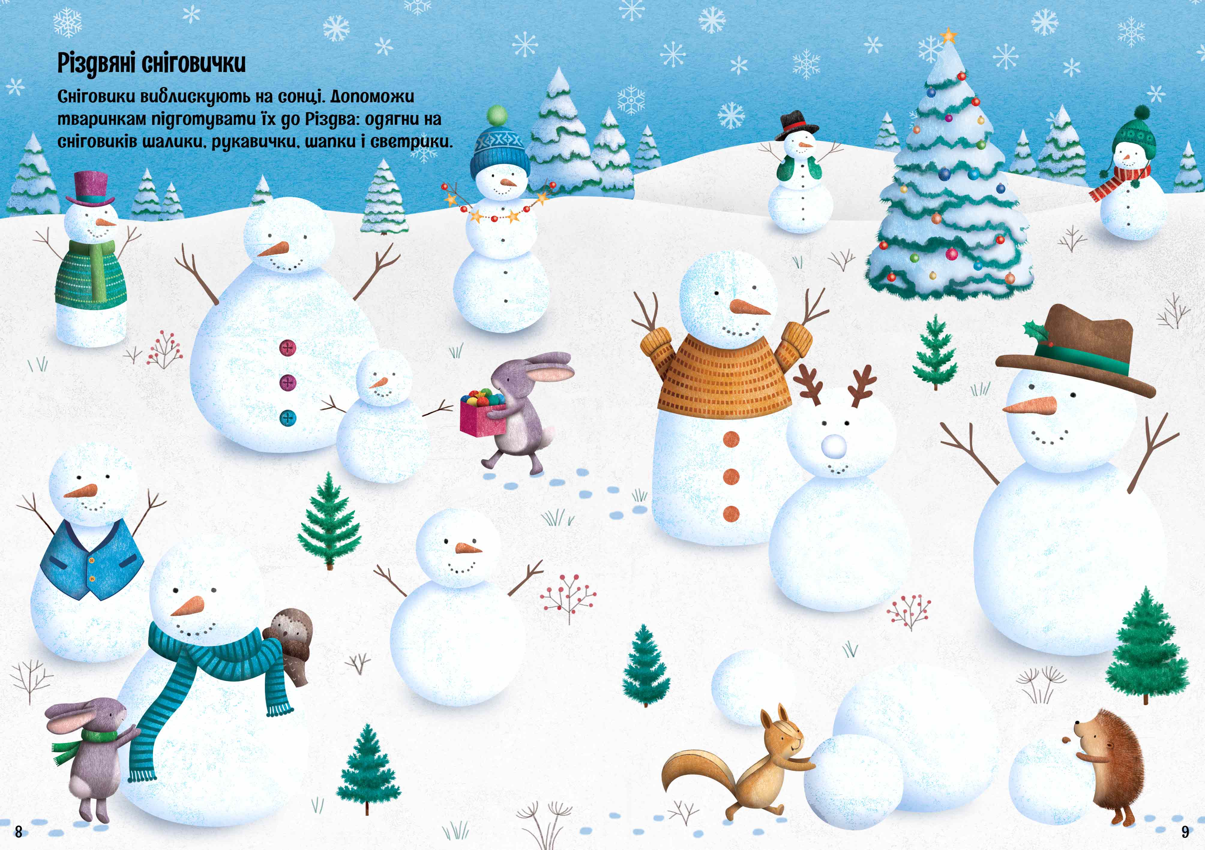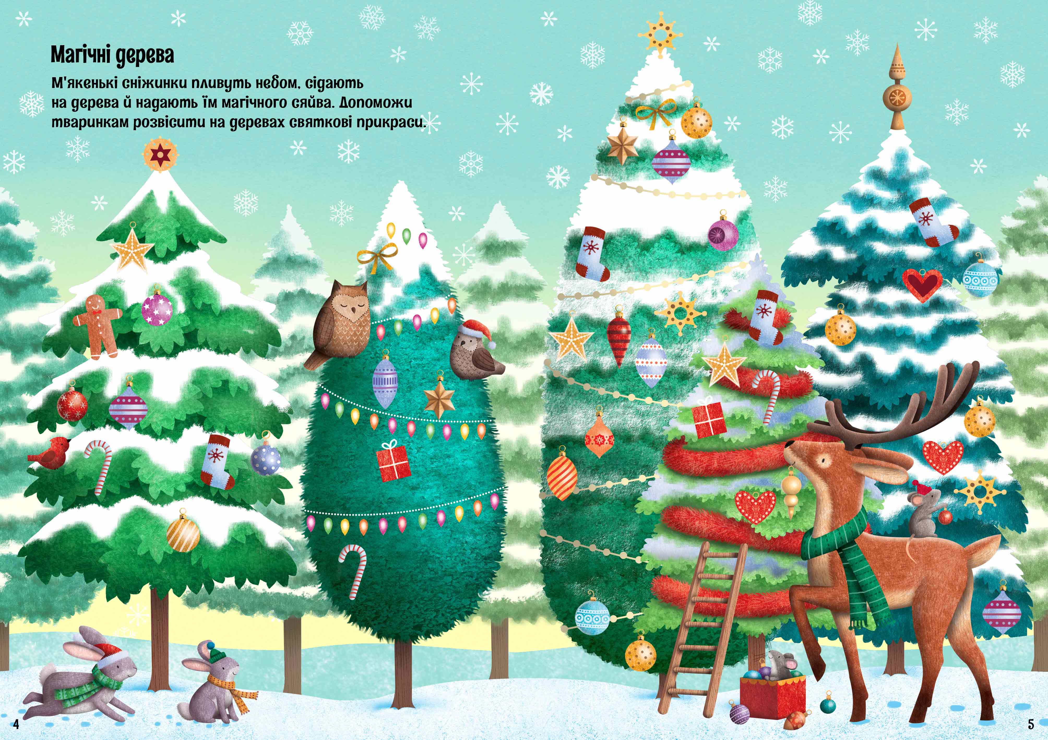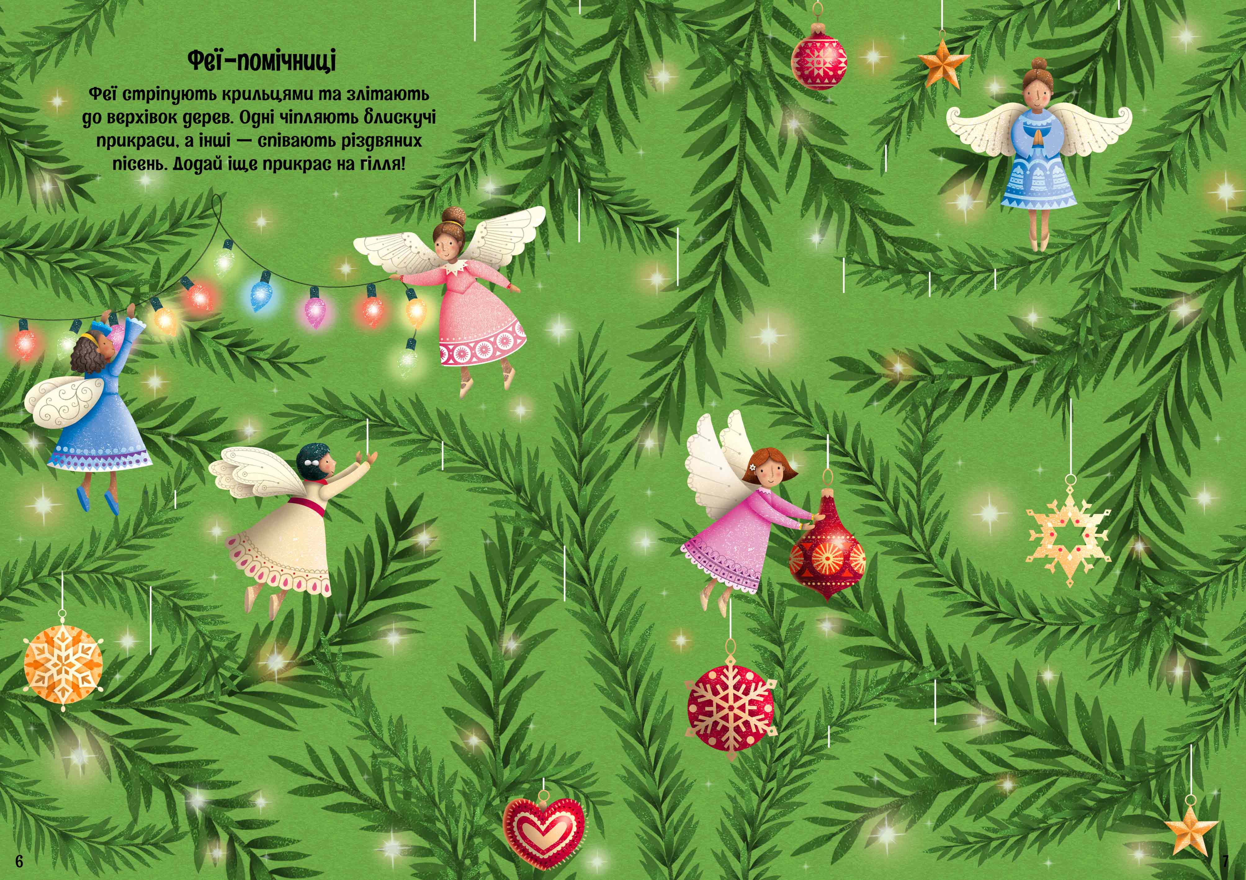 Вiд заснiженого рiздвяного ринку до яскравих саней Санти — засипай магiєю кожну сценку за допомогою блискучих налiпок з цiєї книжки.
