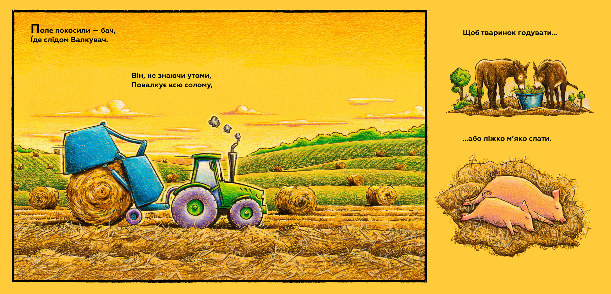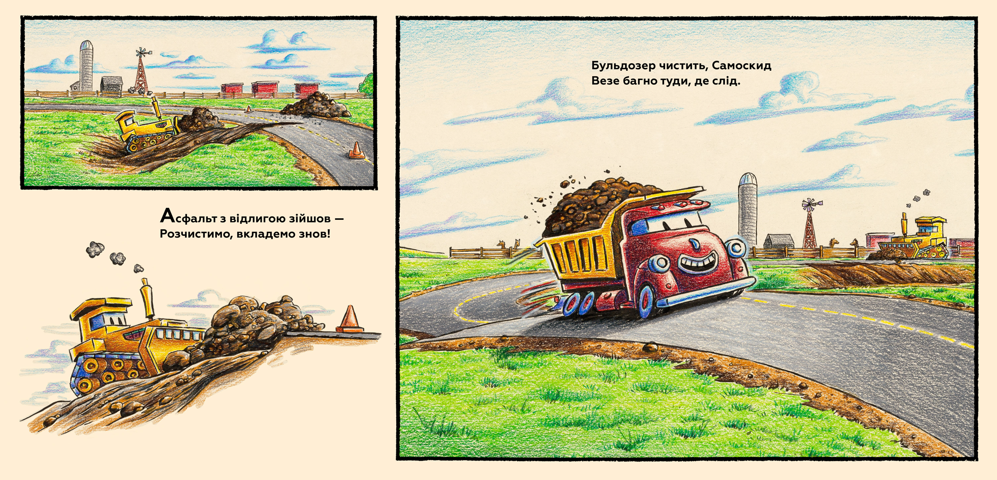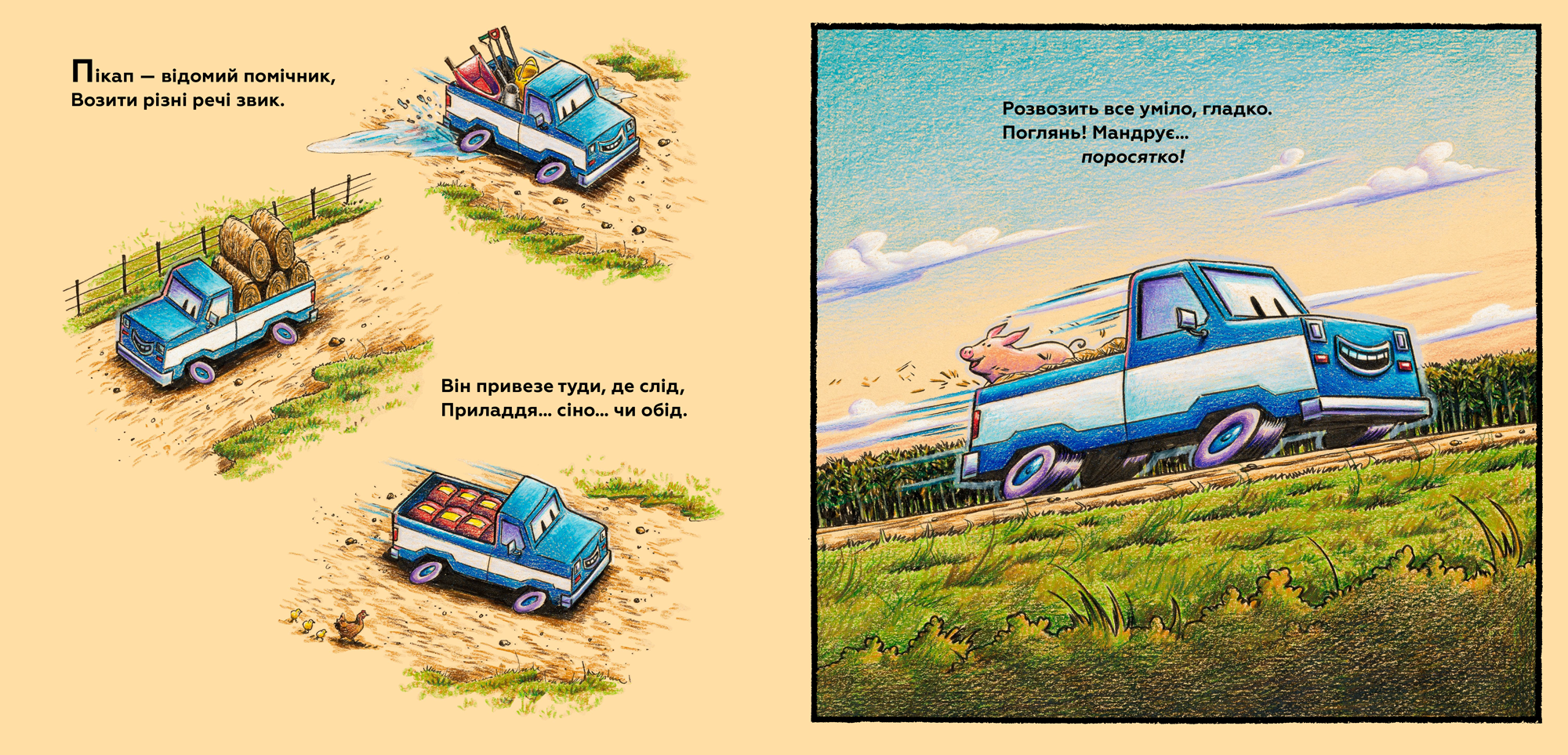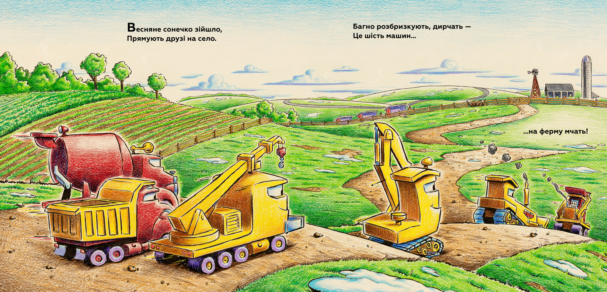 Шість працьовитих машин разом із друзями з ферми сумлінно трудяться