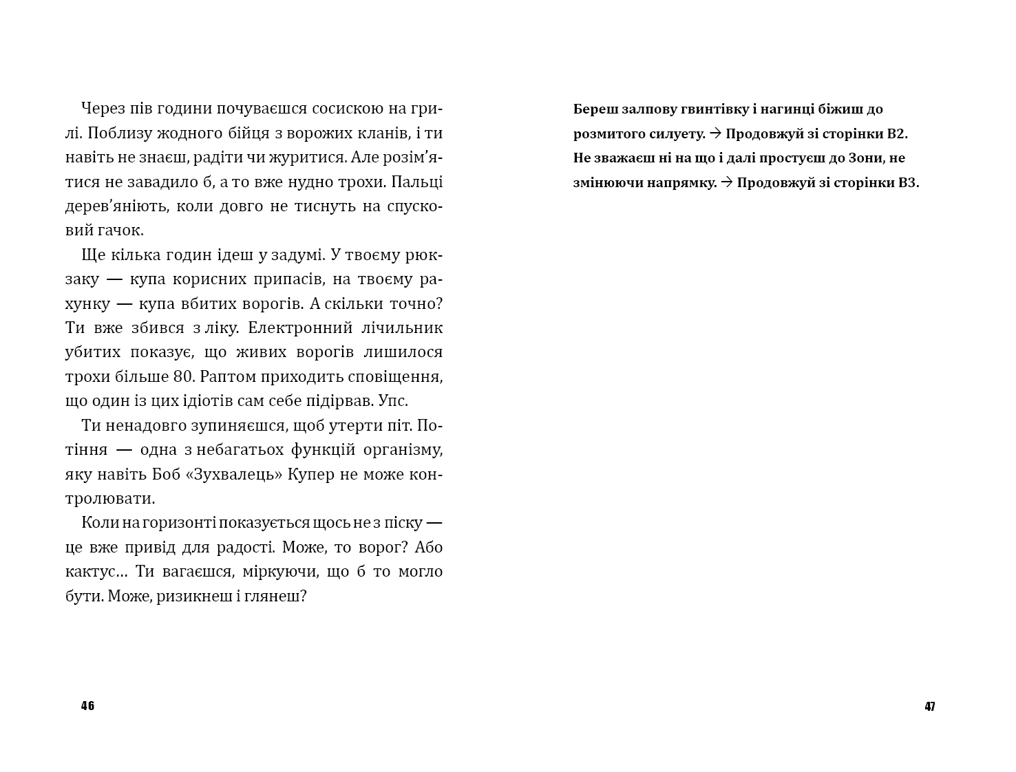 розділу треба обрати дію, від якої залежить, з якої сторінки слід читати далі!