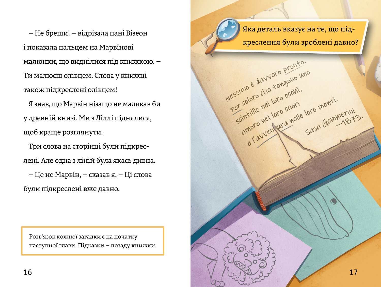 декоративну функцію — на них заховані підказки до загадок, які читач