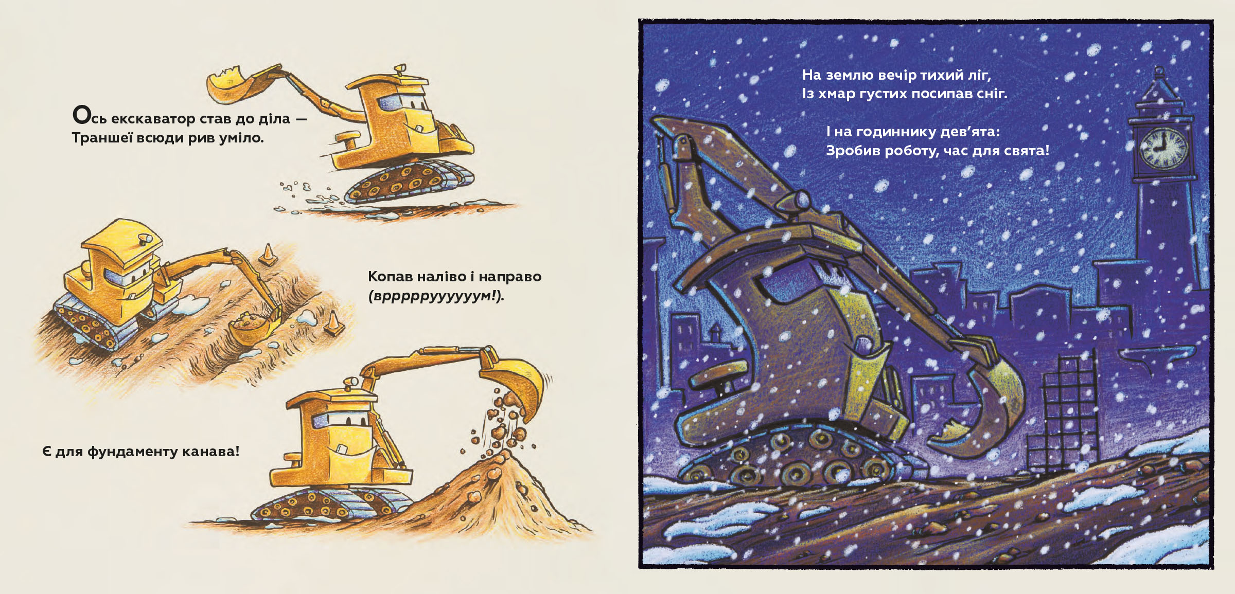 знову і знову про будівельні машини, які засинають після важкого робочого дня.