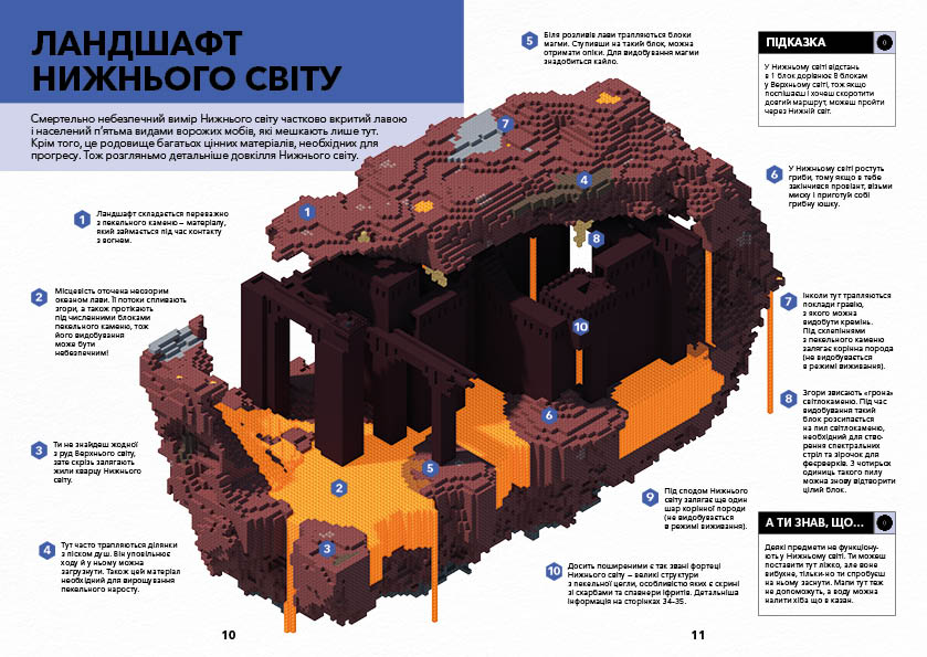 дослідника, про те, що можна знайти в кожному з них, про мобів, які трапляться
