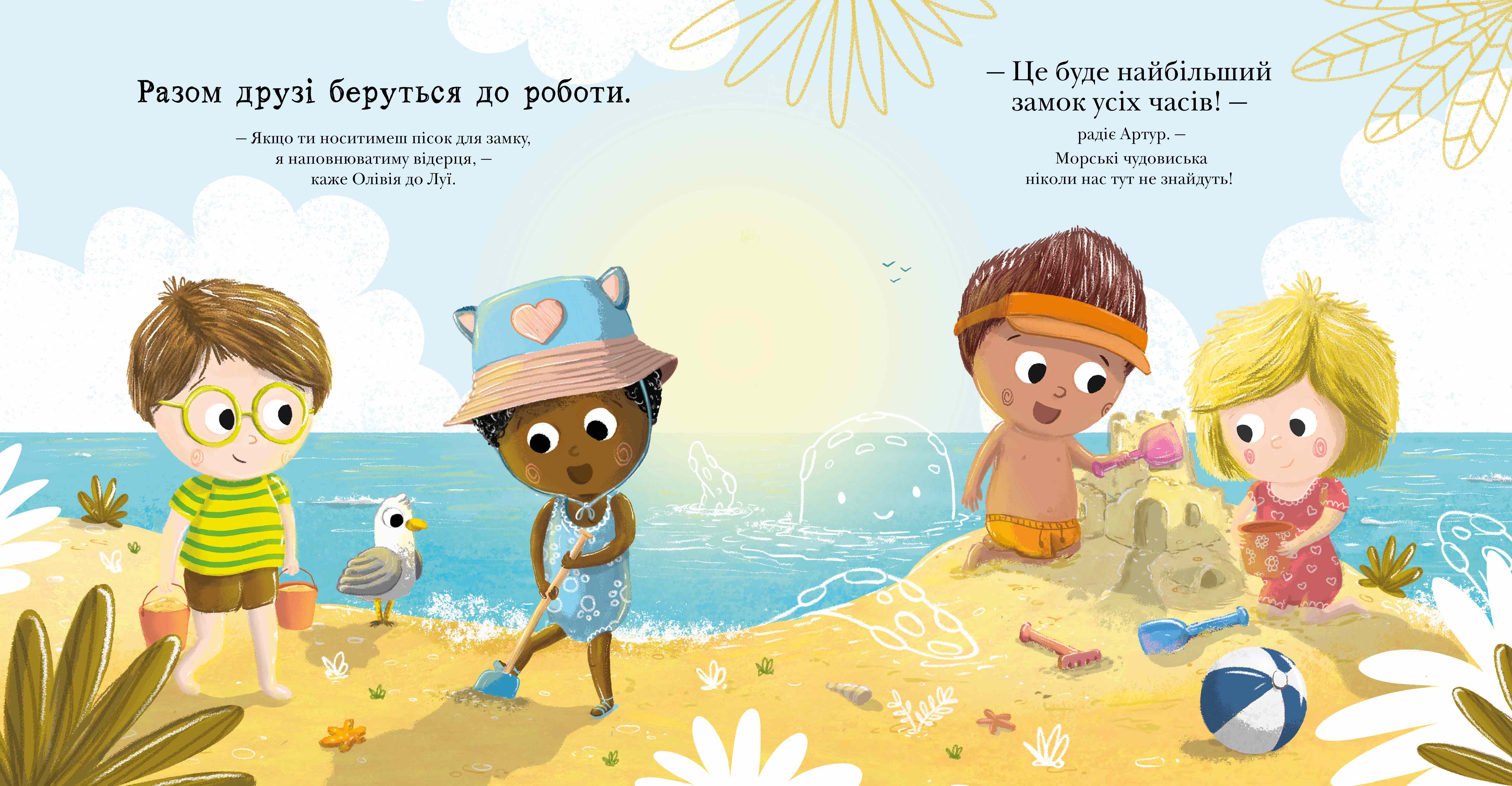 Сьогодні в Олівії важливий день — вона з друзями їде на море. Разом вони будуватимуть піщаний замок, запускатимуть повітряного змія та збиратимуть мушлі.. Проте вже на пляжі все йде шкереберть: вітер стих, зникли мушлі, а піщаний замок виявилося побудувати складніше, ніж очікувалося. Друзі засмучуються, проте згодом знаходять рішення. Разом дітлахи усвідомлюють, що важливо завжди працювати в команді.