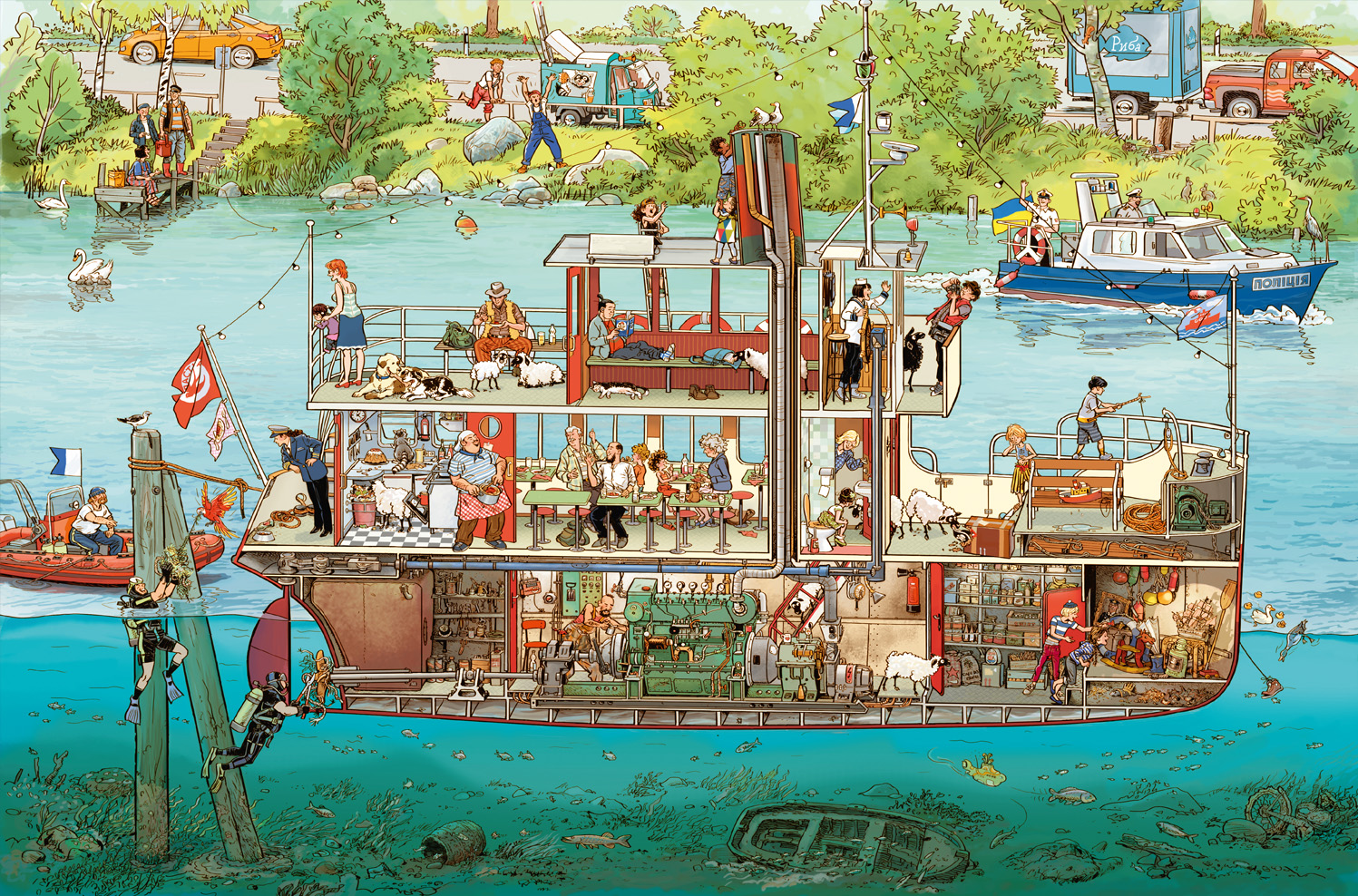 · Ця книжка познайомить дитину з водним транспортом і дозволить поспостерігати за безліччю детальних сцен із життя команди судна та їхніх веселих пасажирів.