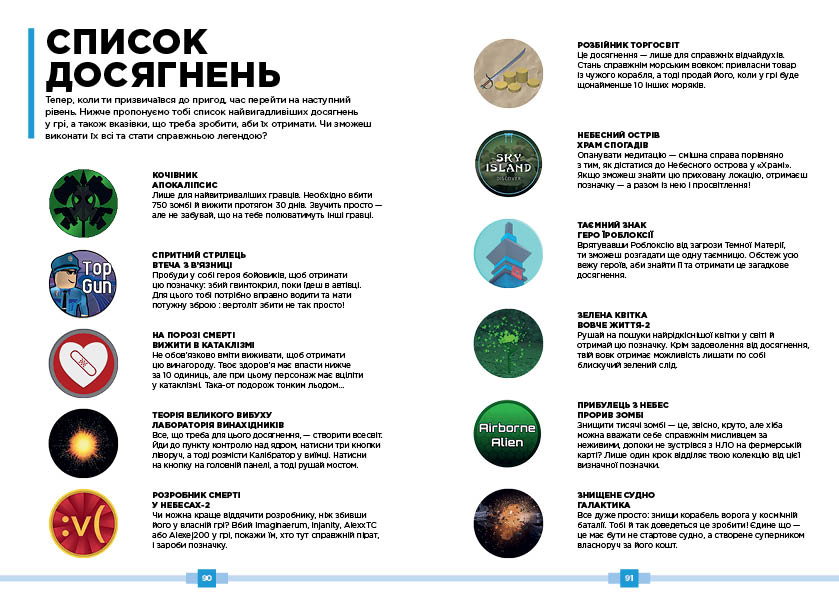 - Як бонус, читачів чекатиме довгий список досягнень у грі та пояснення, як їх здобути.