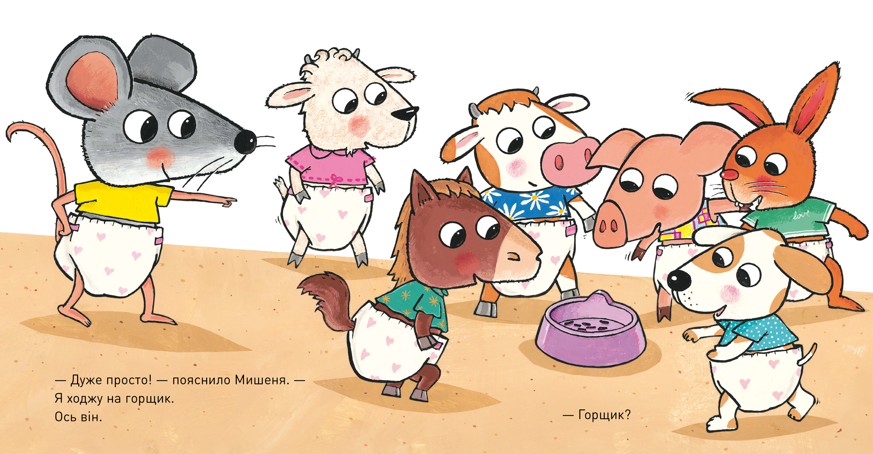 Зайчик, Козеня, Цуценя, Телятко, Лошатко та Порося заглядають у свої