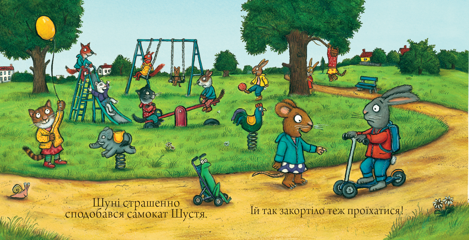 Шуні страшенно кортіло покататися на самокаті Шустя. Тож вона