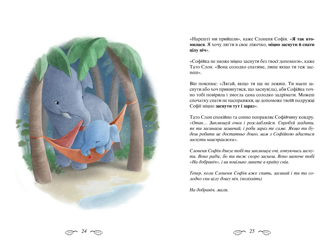для читання на ніч, адже слоненятко Софі саме шукає спосіб солодко задрімати.